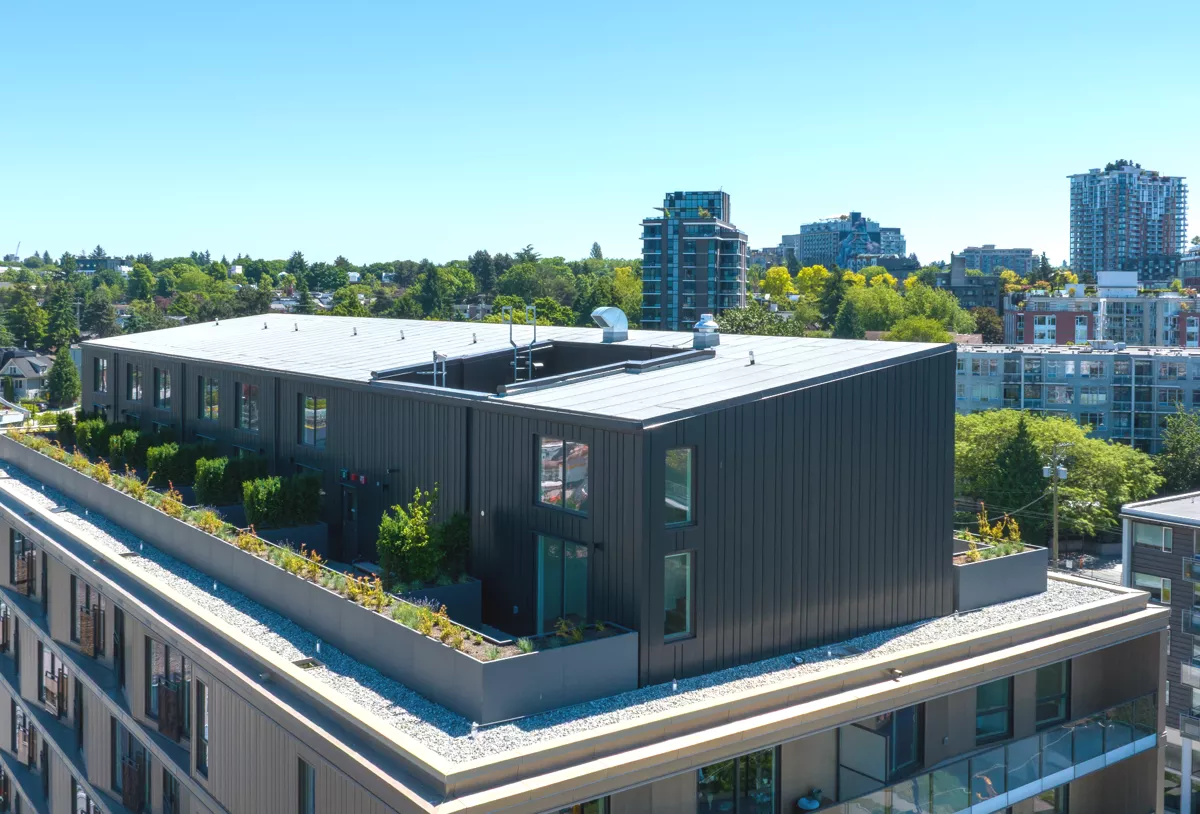 On the upper levels, where outdoor residential and office amenity spaces have been proposed, a green edge of bird friendly native evergreen shrubs and drought tolerant grasses and perennials (many of which are edible) has been proposed to provide a low screen to reduce overlook as well as to provide a buffer to the adjacent buildings and streets below.