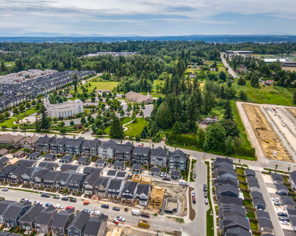 Vesta Properties’ Latimer Heights neighbourhood in Langley is a 74-acre master-planned community. Complete in 2025, Latimer Heights is a new home development in Langley boasting over 17 acres of parks, greenspace, walkways, a centralized pond and new elementary school. This neighbourhood offers distinct styles of new homes – Condo Towers, Single Family, Rowhomes, and Townhomes, complete with expansive amenity areas that feature playgrounds, pet run, a wildlife habitat patch, fully vegetated detention pond and interconnecting neighbourhood walking paths for the residents.